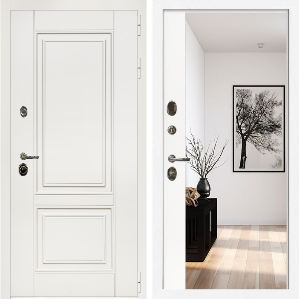 Входная дверь Inteko Афина Белый Мат + Зеркало панорама Белый софт