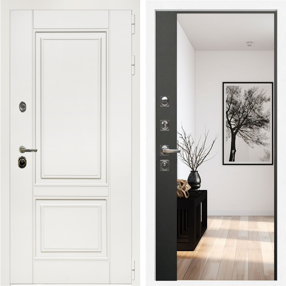 Входная дверь Inteko Афина Белый Мат + Зеркало панорама Черный кварц