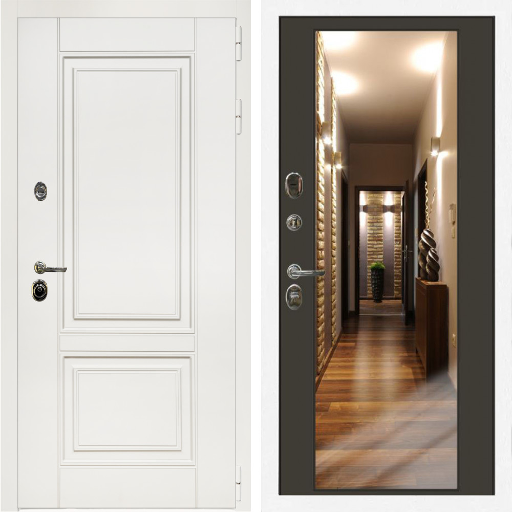 Входная дверь Inteko Афина Белый Мат + Зеркало венге