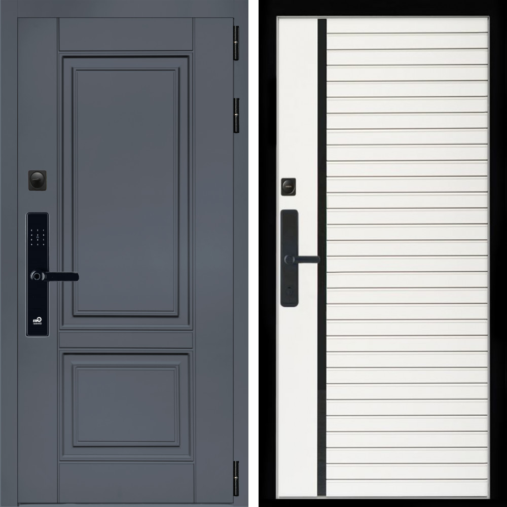 Входная дверь • Габаритные размеры: 2050x860 мм, 2050x960 мм • Металл 1.8мм. Черная шагрень • Внешнее покрытие: МДФ 12 мм. • Толщина полотна: 115 мм. • Толщина коробки: 120 мм. • Короб закрытого типа, утепленный • Уплотнитель: 3 контура • Два вертикальных ребра жесткости • ЭЛЕКТРОННЫЙ ЗАМОК НА ВЫБОР • Замок дополнительный: Гардиан 6001 • Врезная броненакладка • Пазы на коробке под доборы • Независимая задвижка есть • Фурнитура ЧЕРНАЯ ..