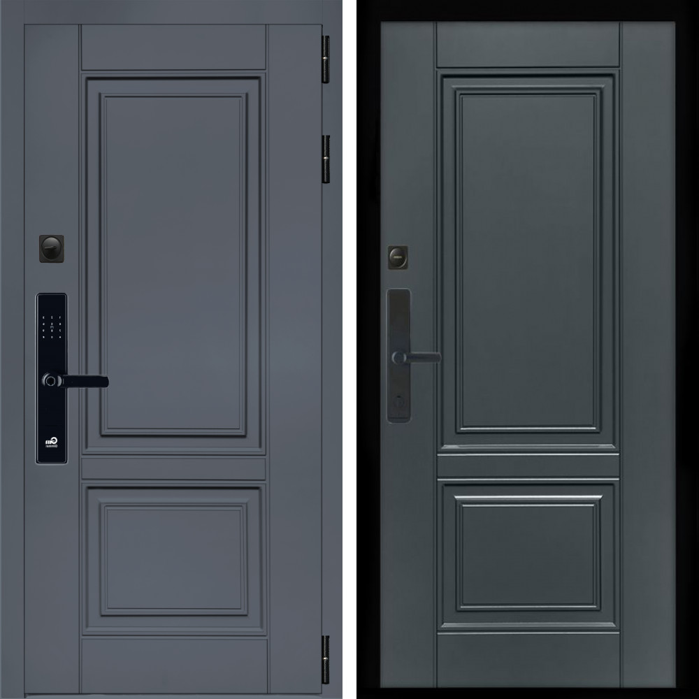 Входная дверь • Габаритные размеры: 2050x860 мм, 2050x960 мм • Металл 1.8мм. Черная шагрень • Внешнее покрытие: МДФ 12 мм. • Толщина полотна: 115 мм. • Толщина коробки: 120 мм. • Короб закрытого типа, утепленный • Уплотнитель: 3 контура • Два вертикальных ребра жесткости • ЭЛЕКТРОННЫЙ ЗАМОК НА ВЫБОР • Замок дополнительный: Гардиан 6001 • Врезная броненакладка • Пазы на коробке под доборы • Независимая задвижка есть • Фурнитура ЧЕРНАЯ ..