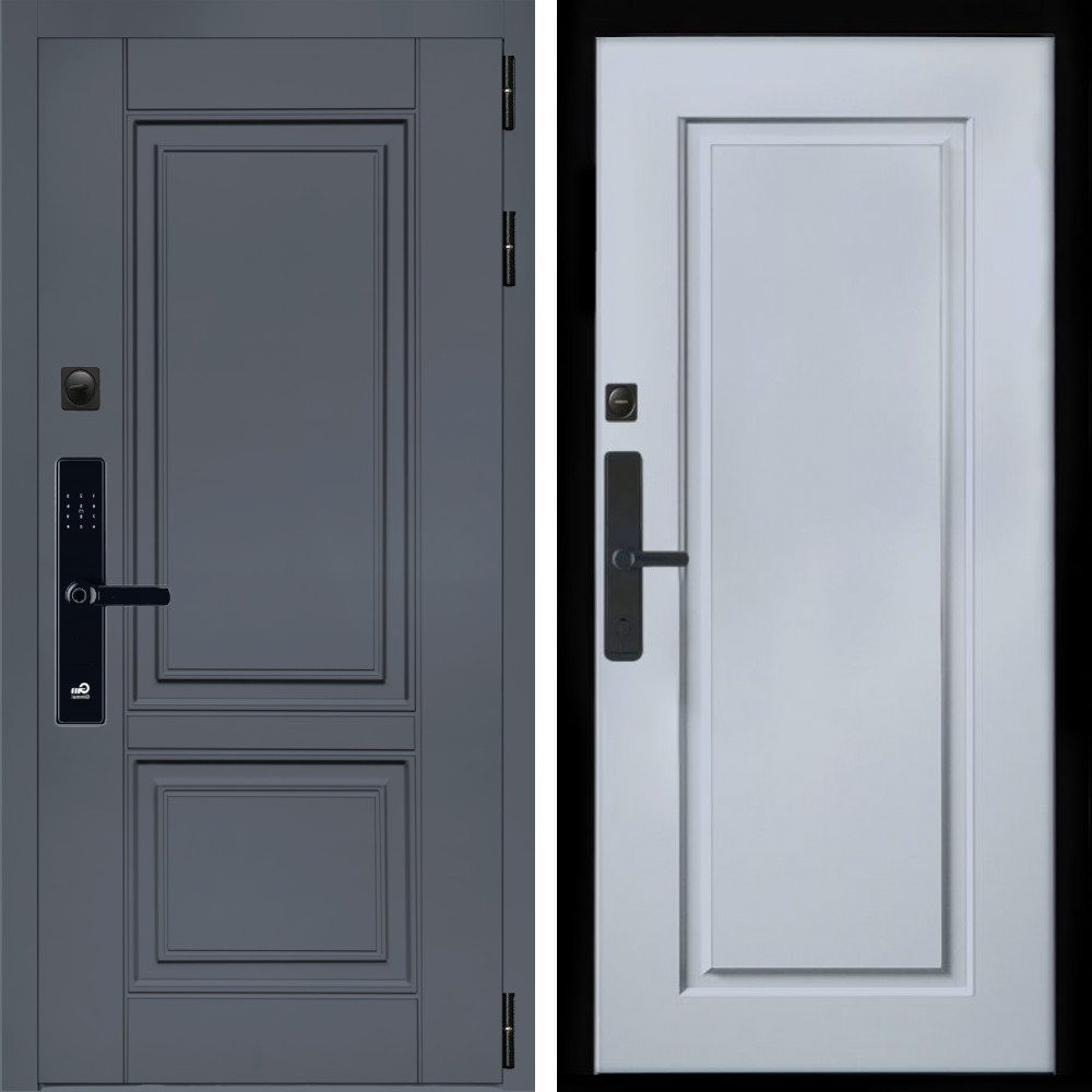 Входная дверь • Габаритные размеры: 2050x860 мм, 2050x960 мм • Металл 1.8мм. Черная шагрень • Внешнее покрытие: МДФ 12 мм. • Толщина полотна: 115 мм. • Толщина коробки: 120 мм. • Короб закрытого типа, утепленный • Уплотнитель: 3 контура • Два вертикальных ребра жесткости • ЭЛЕКТРОННЫЙ ЗАМОК НА ВЫБОР • Замок дополнительный: Гардиан 6001 • Врезная броненакладка • Пазы на коробке под доборы • Независимая задвижка есть • Фурнитура ЧЕРНАЯ ..