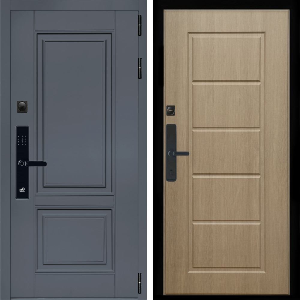 Входная дверь • Габаритные размеры: 2050x860 мм, 2050x960 мм • Металл 1.8мм. Черная шагрень • Внешнее покрытие: МДФ 12 мм. • Толщина полотна: 115 мм. • Толщина коробки: 120 мм. • Короб закрытого типа, утепленный • Уплотнитель: 3 контура • Два вертикальных ребра жесткости • ЭЛЕКТРОННЫЙ ЗАМОК НА ВЫБОР • Замок дополнительный: Гардиан 6001 • Врезная броненакладка • Пазы на коробке под доборы • Независимая задвижка есть • Фурнитура ЧЕРНАЯ ..