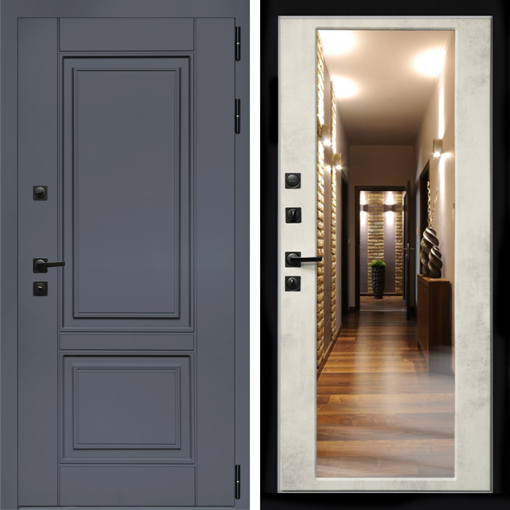 Входная дверь Inteko Афина Графит + Зеркало бетон светлый