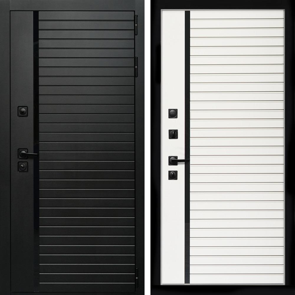 Входная дверь • Габаритные размеры: 2050x860 мм, 2050x960 мм • Металл 1.8мм • Внешнее покрытие: МДФ 16 мм. • Толщина полотна: 115 мм. • Толщина коробки: 120 мм. • Короб закрытого типа, утепленный • Уплотнитель: 3 контура • Два вертикальных ребра жесткости • Замок основной: Гардиан 6211 с блокировкой язычка • Замок дополнительный: Гардиан 6001 • Врезная броненакладка • Пазы на коробке под доборы • Независимая задвижка есть • Фурнитура Черная ..
