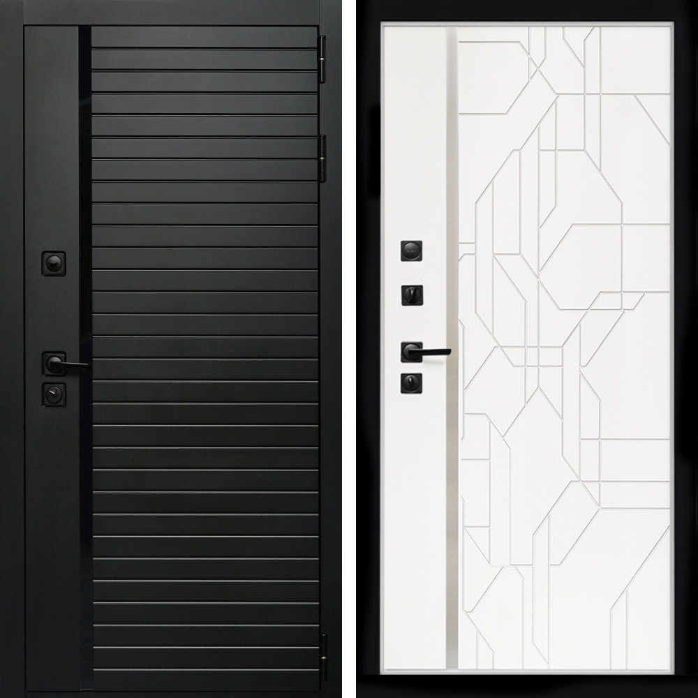 Входная дверь Inteko Агат (Черный кварц,черное стекло) + Эверест нерж белый матовый