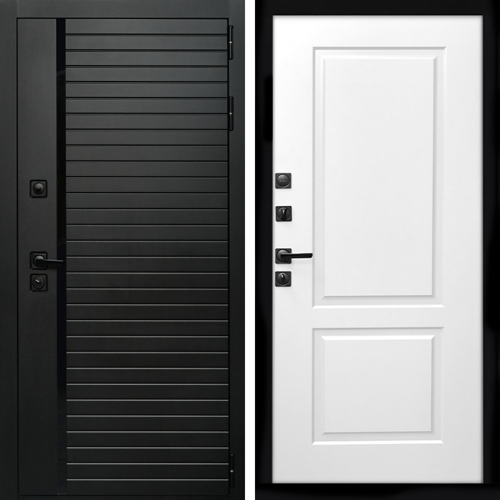 Входная дверь Inteko Агат (Черный кварц,черное стекло) + ФЛ-117 белый матовый