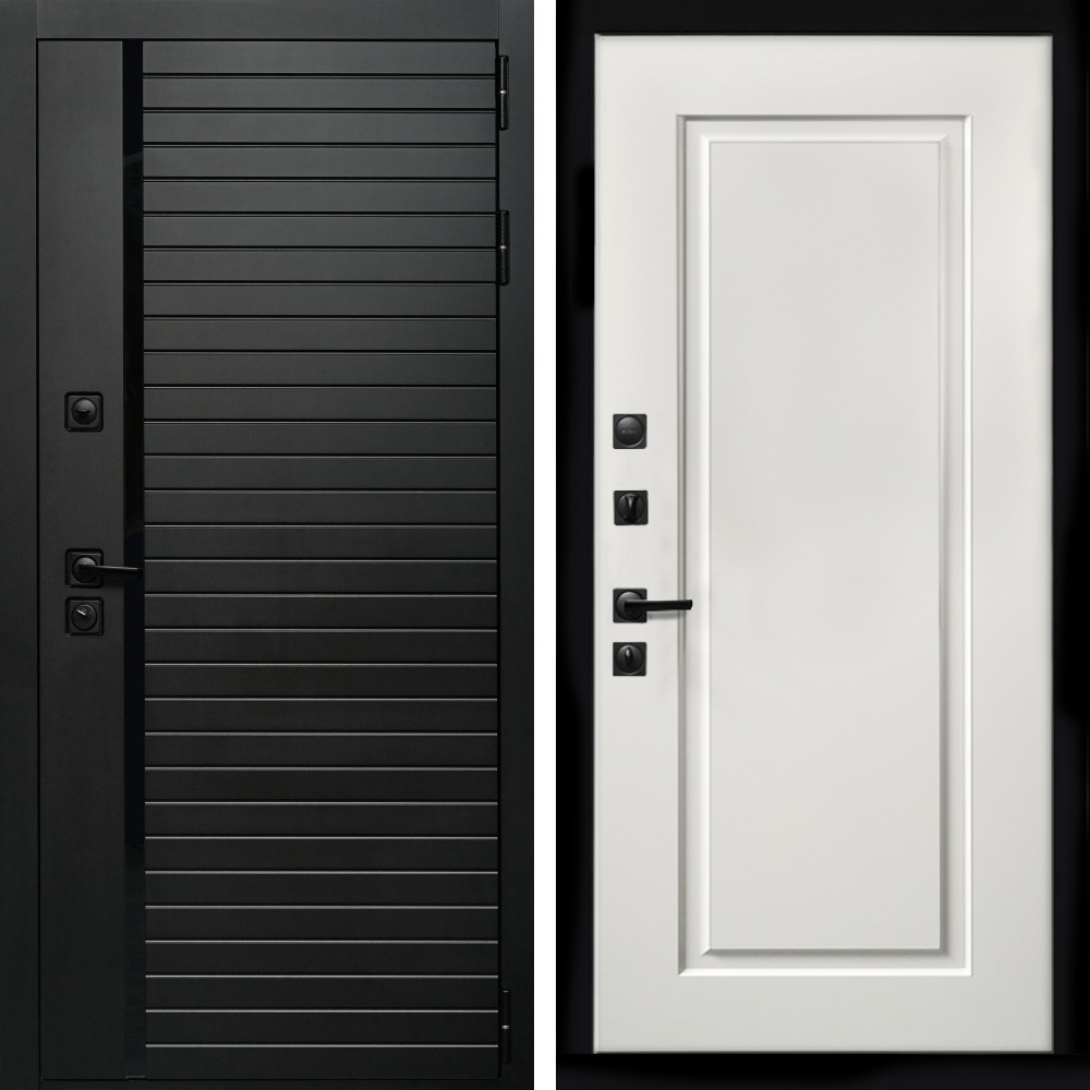 Входная дверь Inteko Агат (Черный кварц,черное стекло) + ФЛ-119 белый матовый