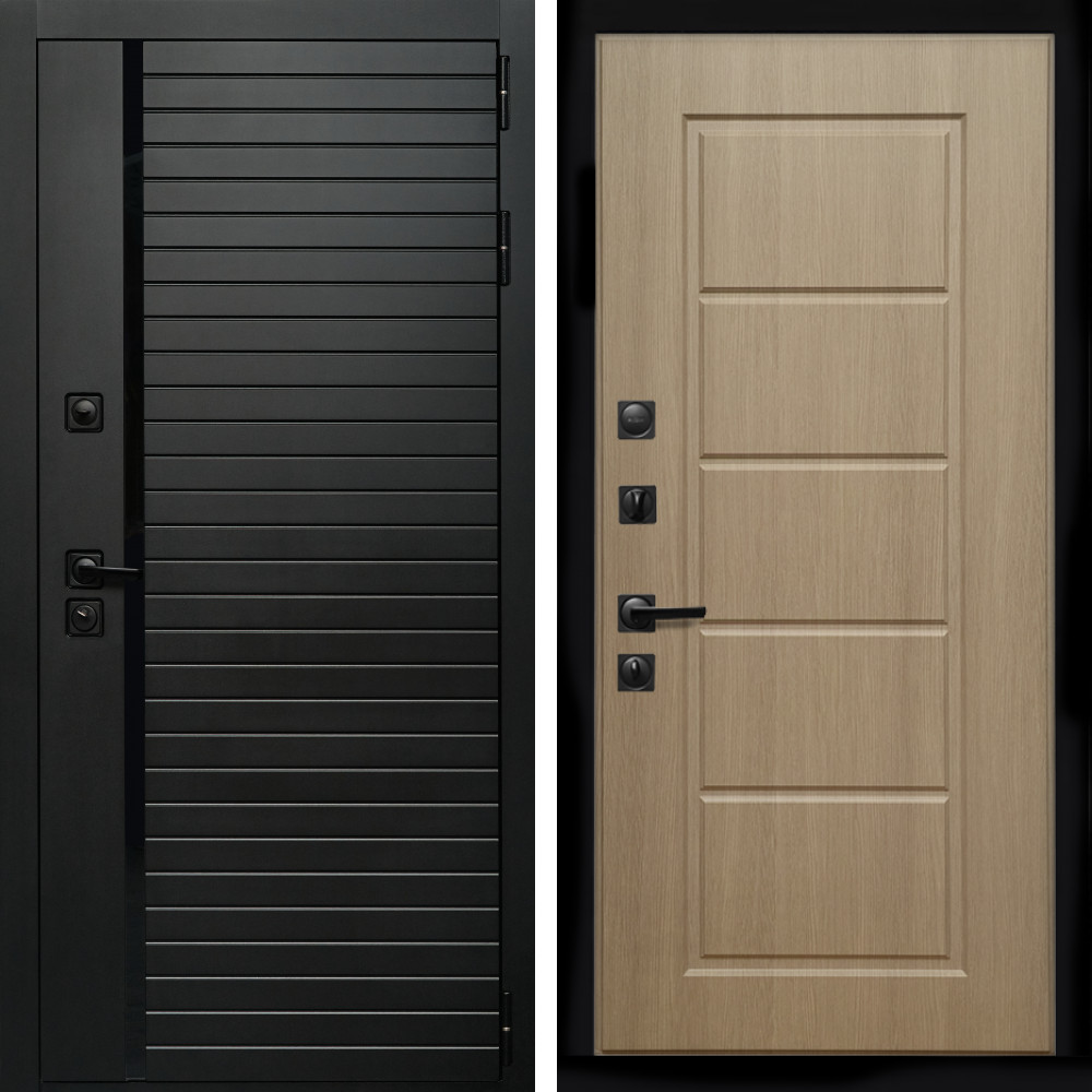 Входная дверь Inteko Агат (Черный кварц,черное стекло) + ФЛ-39 эко дуб