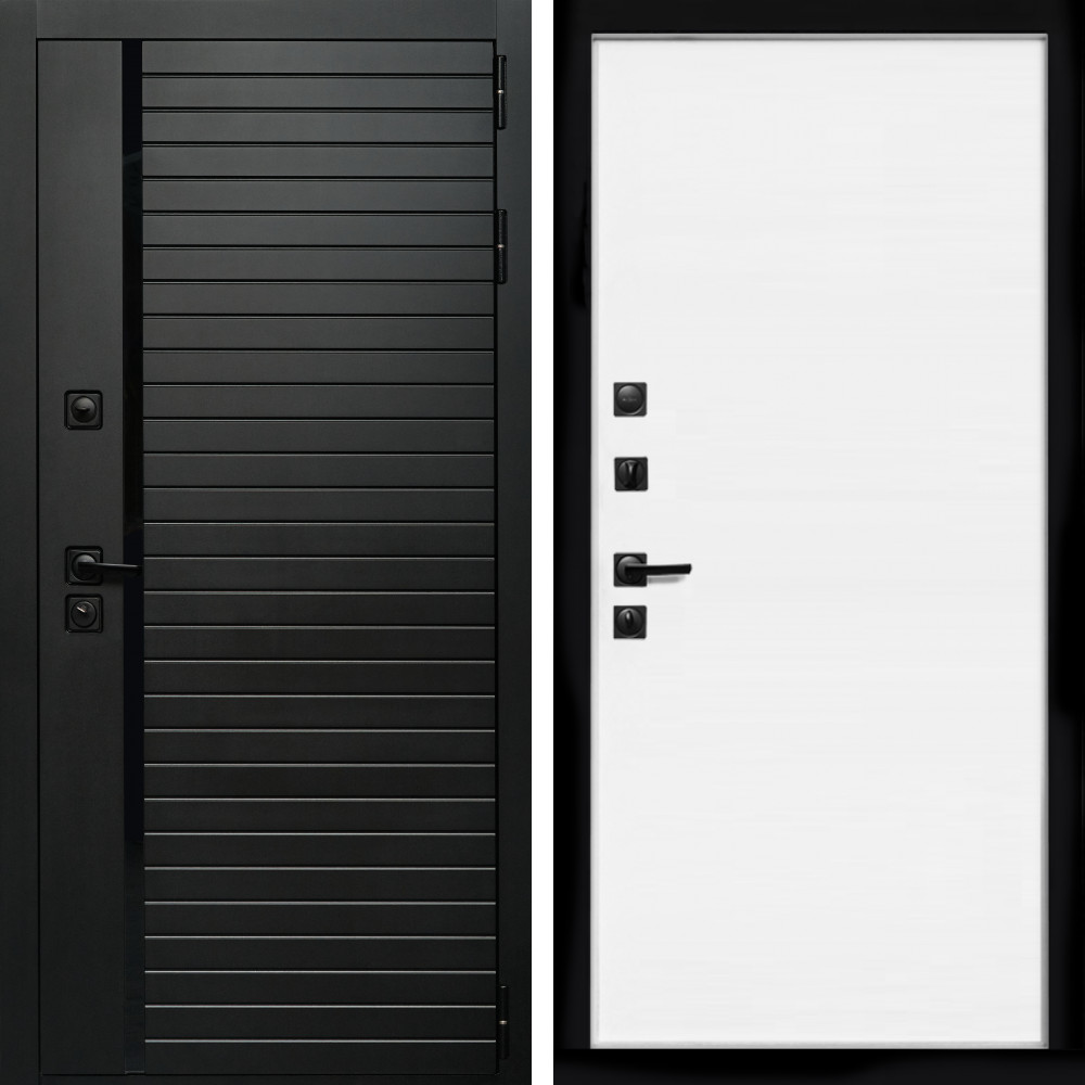 Входная дверь Inteko Агат (Черный кварц,черное стекло) + Гладкая белый матовый