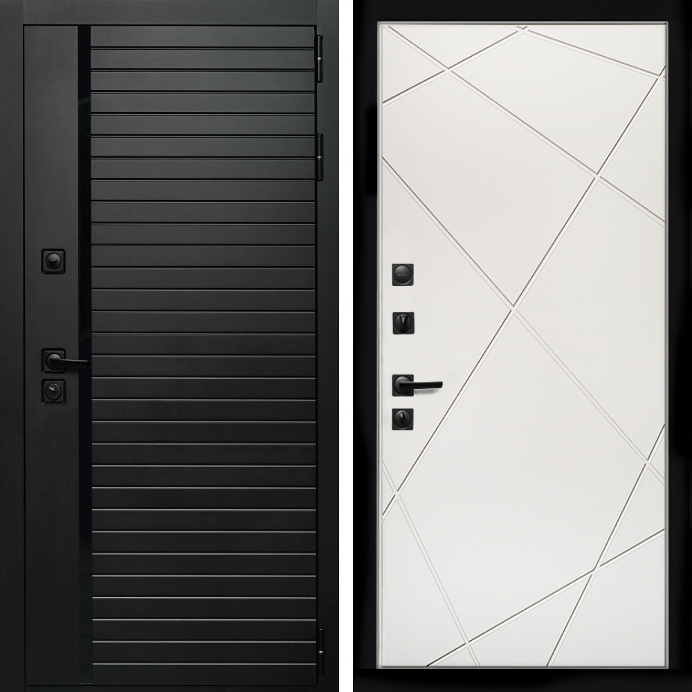 Входная дверь Inteko Агат (Черный кварц,черное стекло) + Лучи белый