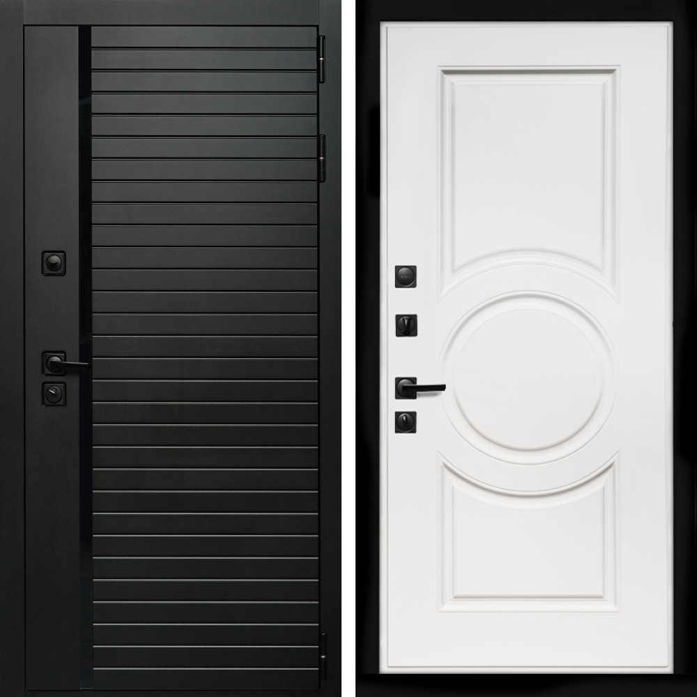 Входная дверь Inteko Агат (Черный кварц,черное стекло) + МС-100 белый матовый