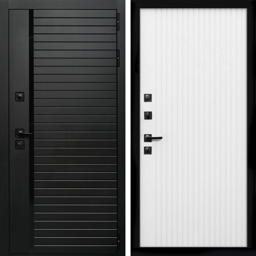 Входная дверь Inteko Агат (Черный кварц,черное стекло) + Вертикаль белый матовый