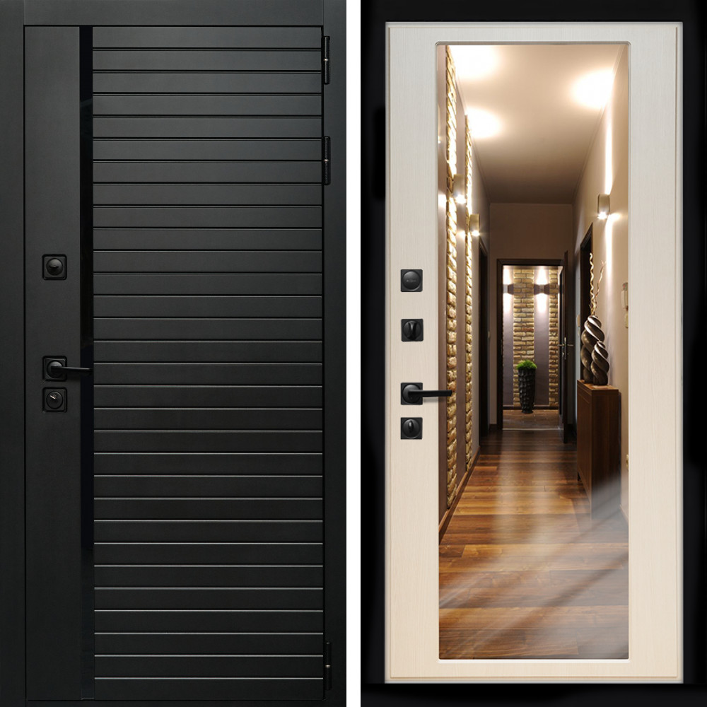 Входная дверь Inteko Агат (Черный кварц,черное стекло) + Зеркало эко дуб