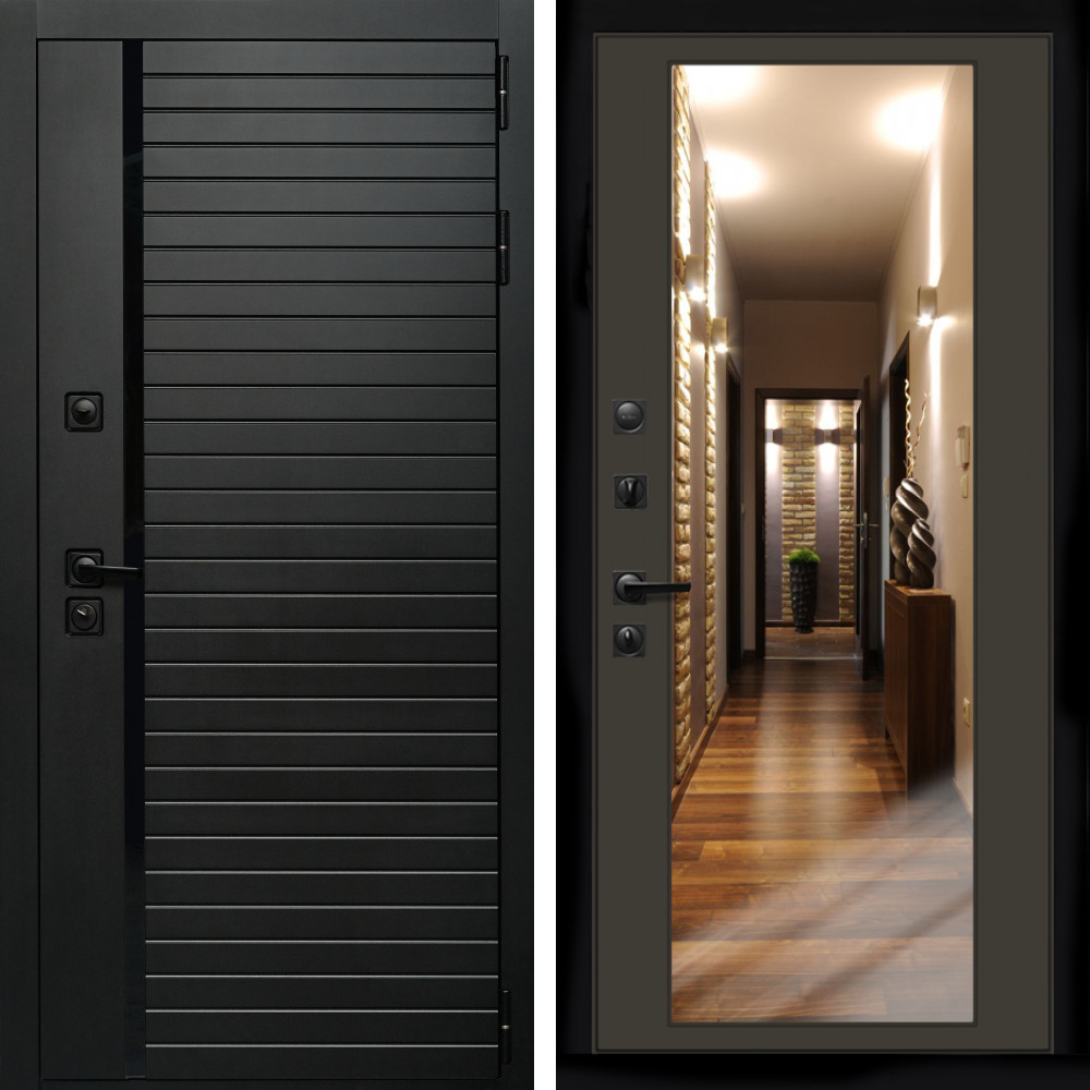 Входная дверь Inteko Агат (Черный кварц,черное стекло) + Зеркало венге