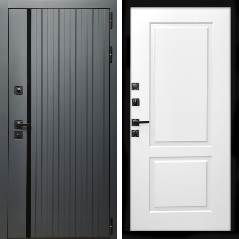 Входная дверь Inteko Агат Графит (Графит, черное стекло) + ФЛ-117 белый матовый