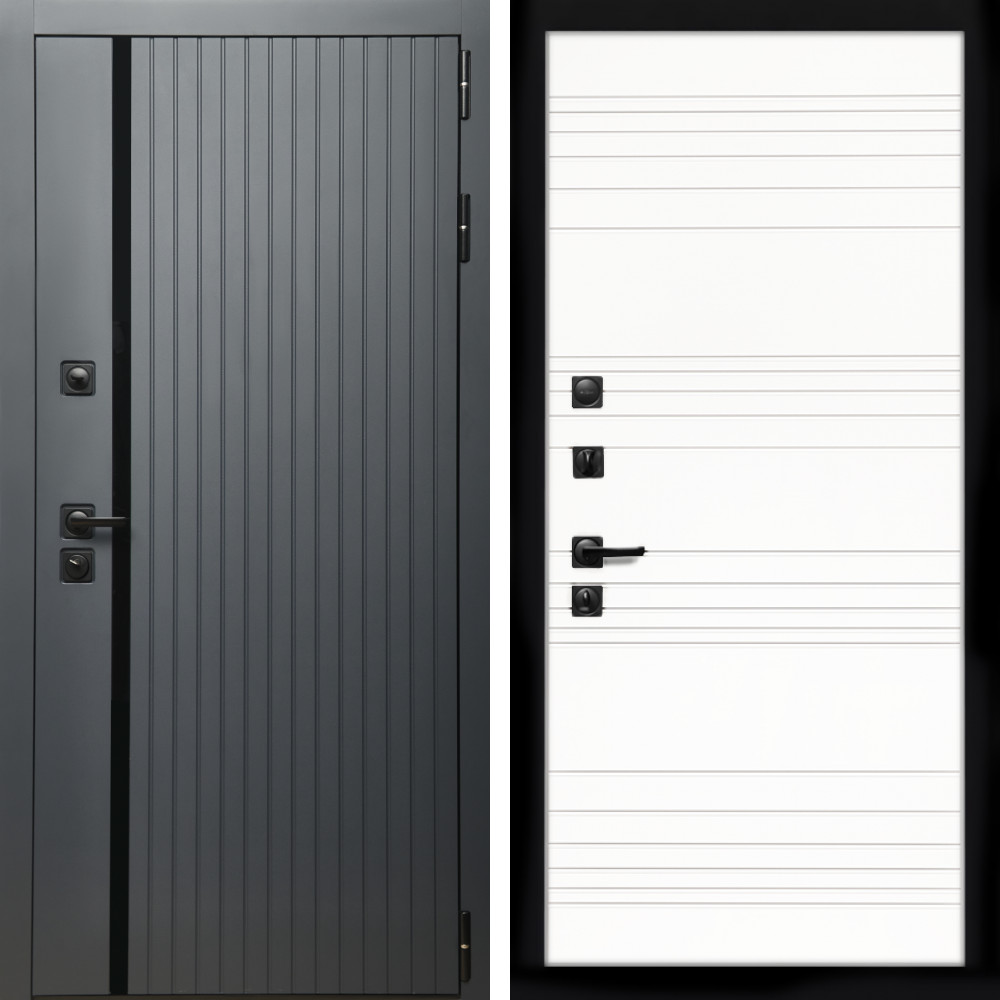 Входная дверь • Габаритные размеры: 2050x860 мм, 2050x960 мм • Металл 1.8мм. Черная шагрень • Внешнее покрытие: МДФ 12 мм. • Толщина полотна: 115 мм. • Толщина коробки: 120 мм. • Короб закрытого типа, утепленный • Уплотнитель: 3 контура • Два вертикальных ребра жесткости • ЭЛЕКТРОННЫЙ ЗАМОК НА ВЫБОР • Замок дополнительный: Гардиан 6001 • Врезная броненакладка • Пазы на коробке под доборы • Независимая задвижка есть • Фурнитура ЧЕРНАЯ ..