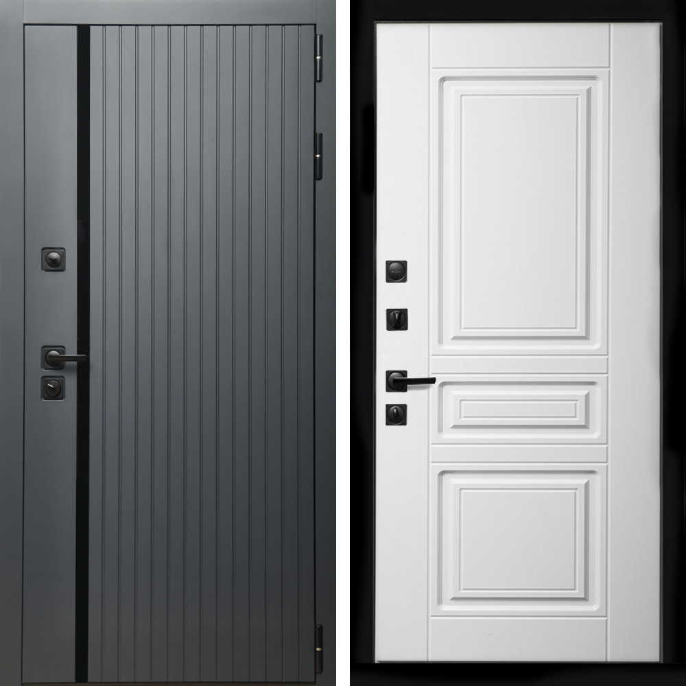 Входная дверь Inteko Агат Графит (Графит, черное стекло) + Классика белый матовый