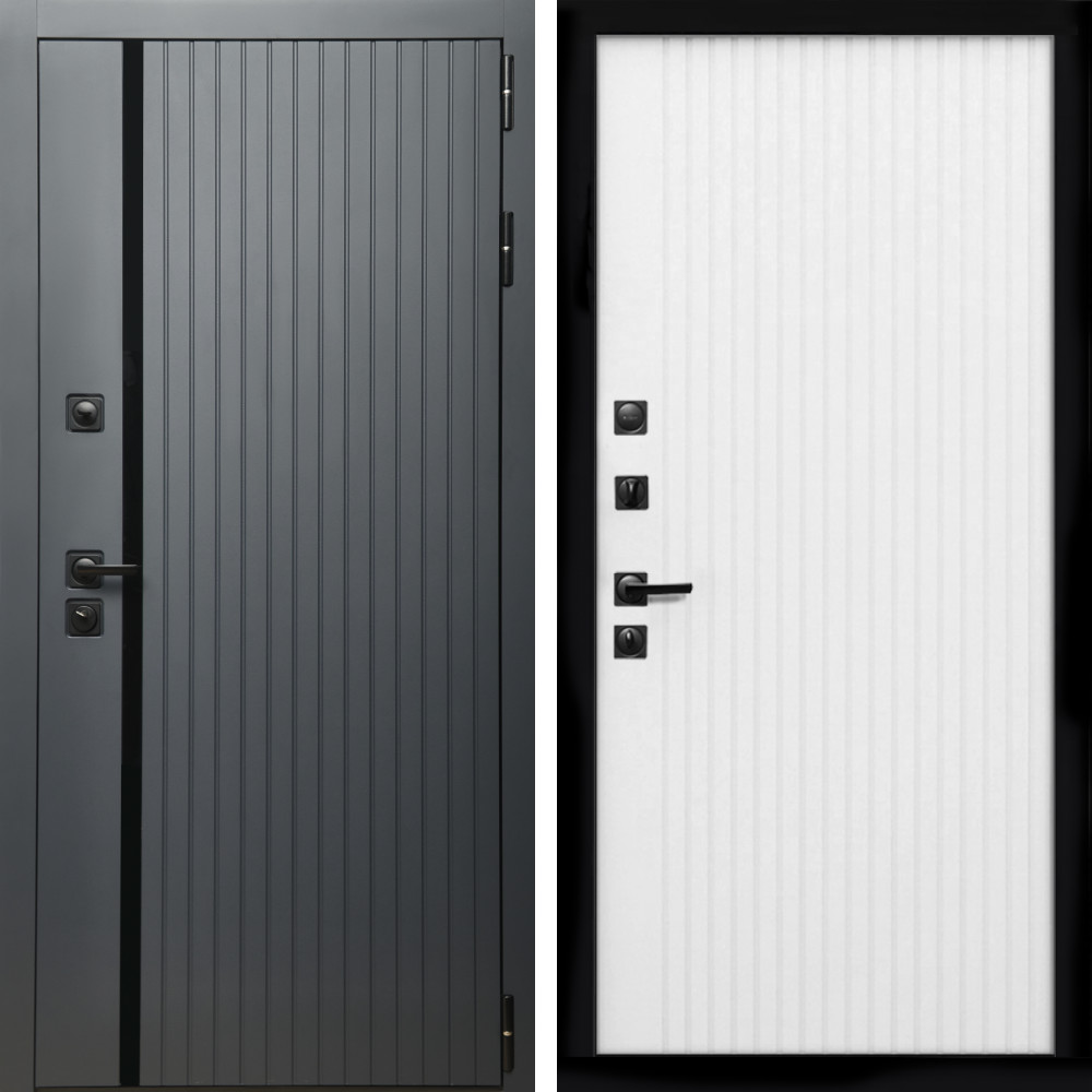 Входная дверь Inteko Агат Графит (Графит, черное стекло) + Вертикаль белый матовый