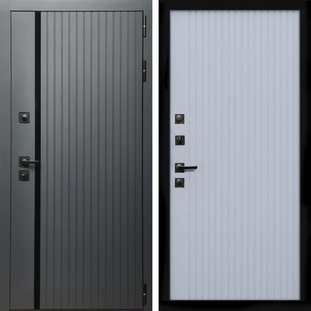 Входная дверь Inteko Агат Графит (Графит, черное стекло) + Вертикаль Силк маус