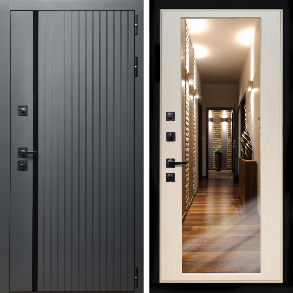Входная дверь Inteko Агат Графит (Графит, черное стекло) + Зеркало эко дуб