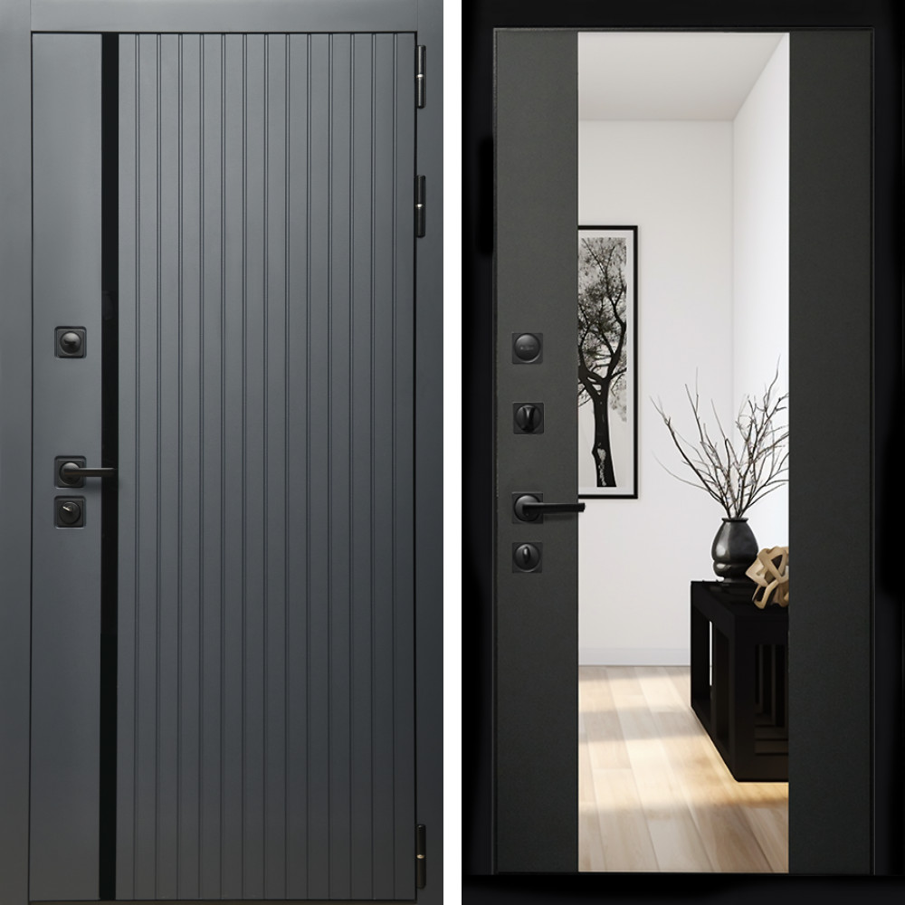 Входная дверь Inteko Агат Графит (Графит, черное стекло) + Зеркало сб-16 черный кварц