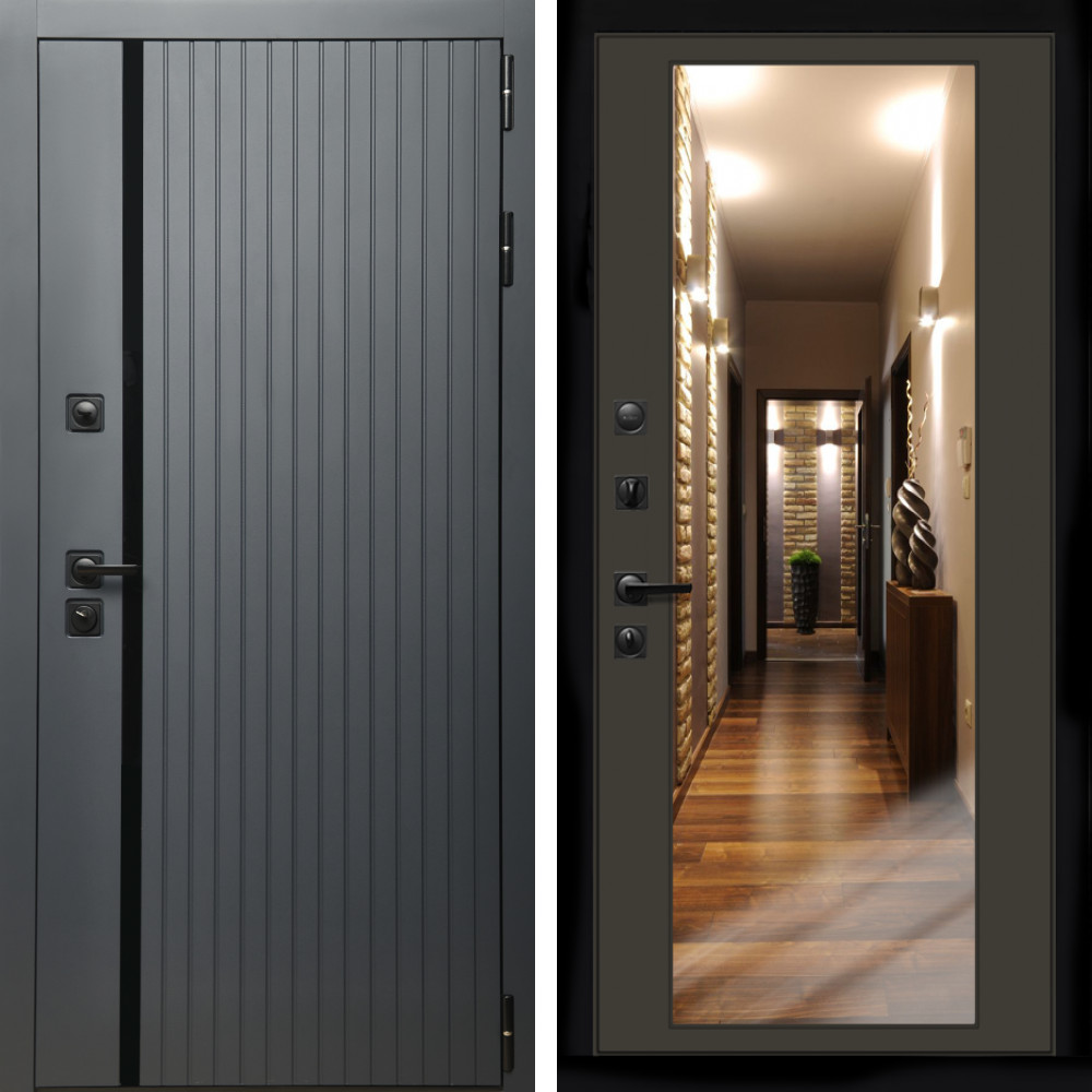 Входная дверь Inteko Агат Графит (Графит, черное стекло) + Зеркало венге