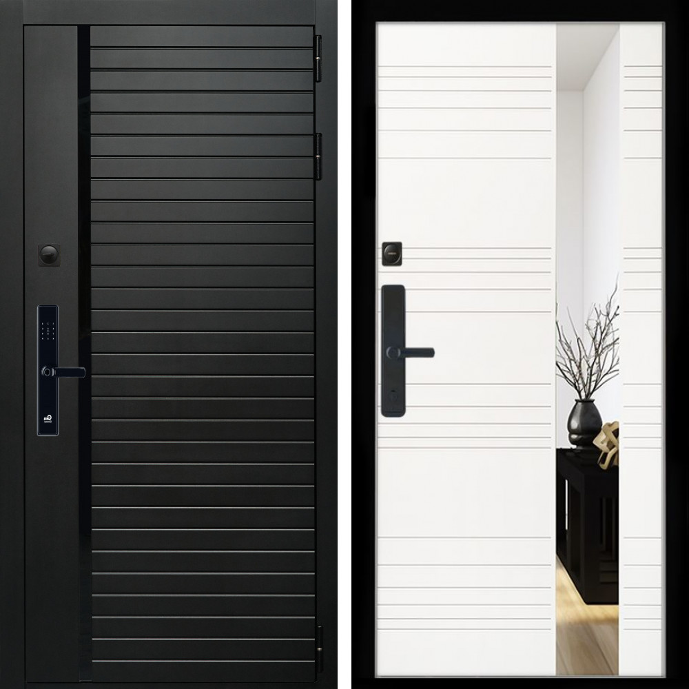 Входная дверь • Габаритные размеры: 2050x860 мм, 2050x960 мм • Металл 1.8мм. Черная шагрень • Внешнее покрытие: МДФ 12 мм. • Толщина полотна: 115 мм. • Толщина коробки: 120 мм. • Короб закрытого типа, утепленный • Уплотнитель: 3 контура • Два вертикальных ребра жесткости • ЭЛЕКТРОННЫЙ ЗАМОК НА ВЫБОР • Замок дополнительный: Гардиан 6001 • Врезная броненакладка • Пазы на коробке под доборы • Независимая задвижка есть • Фурнитура ЧЕРНАЯ ..