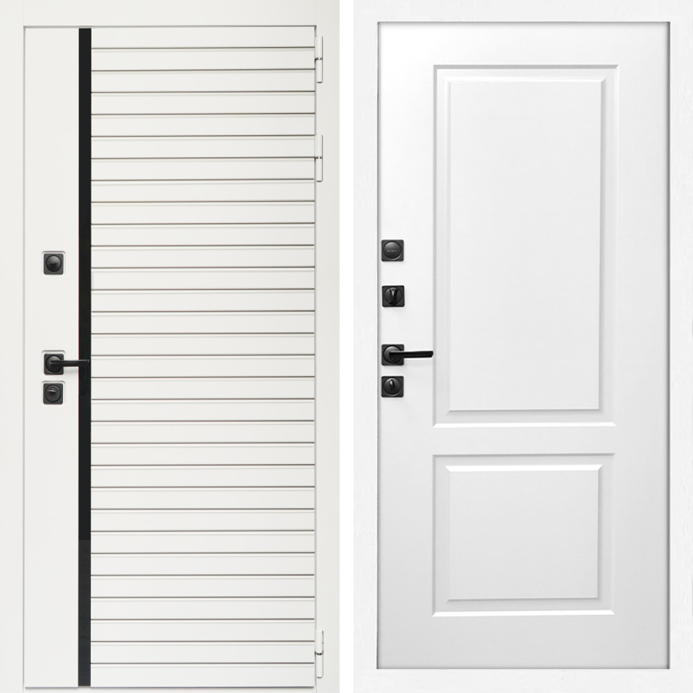 Входная дверь Inteko Агата Вайт (Бел мат, черное стекло) + ФЛ-117 белый матовый