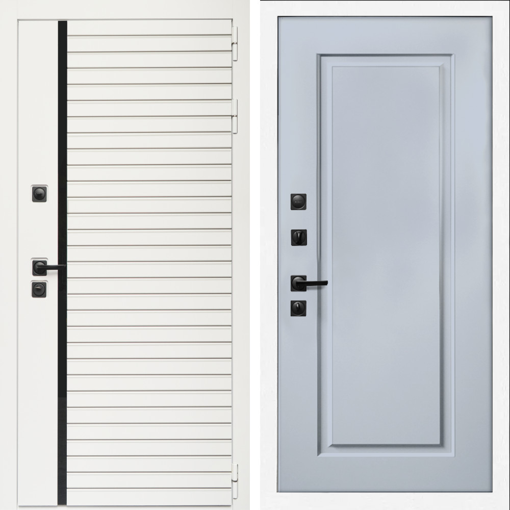 Входная дверь Inteko Агата Вайт (Бел мат, черное стекло) + ФЛ-119 силк маус