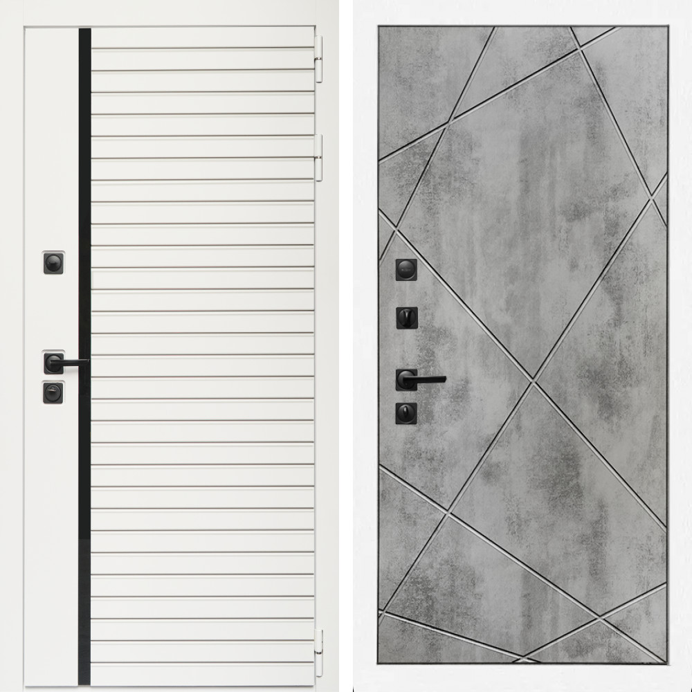 Входная дверь Inteko Агата Вайт (Бел мат, черное стекло) + Лучи бетон светлый