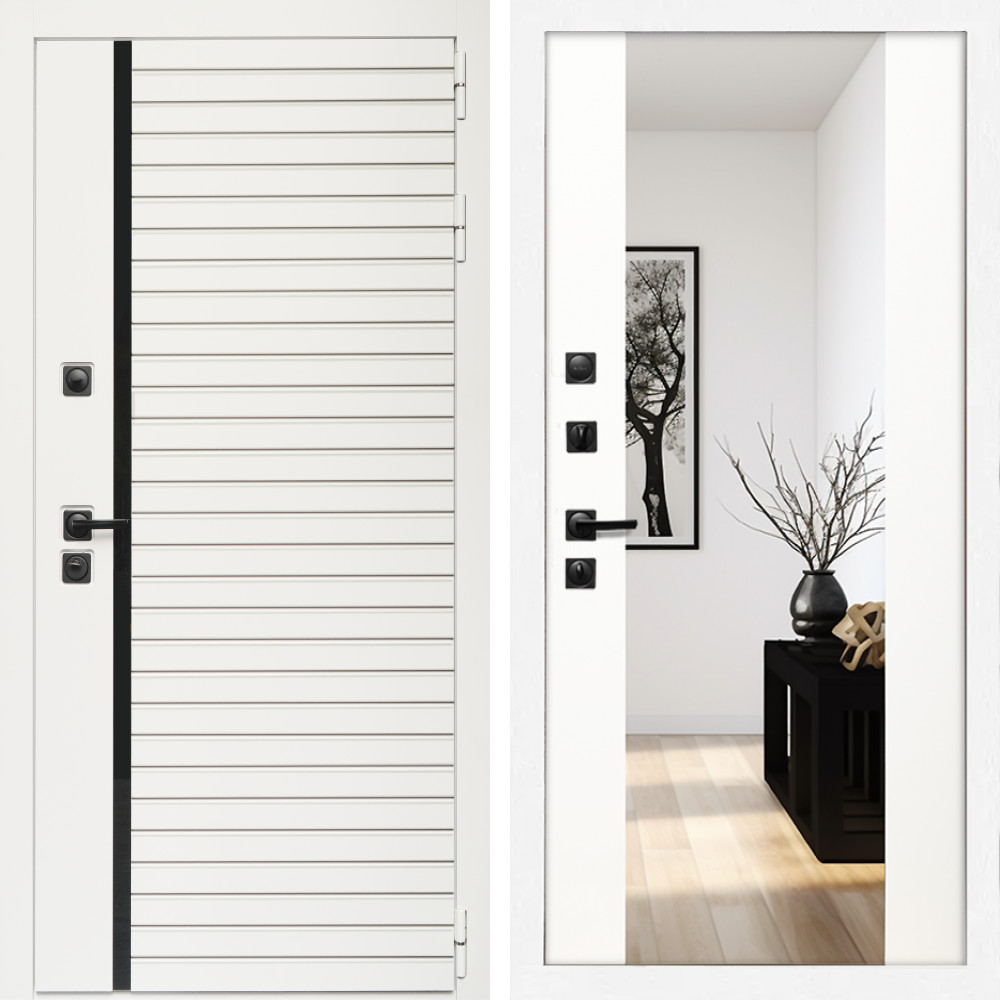 Входная дверь Inteko Агата Вайт (Бел мат, черное стекло) + Зеркало сб-16 белый матовый