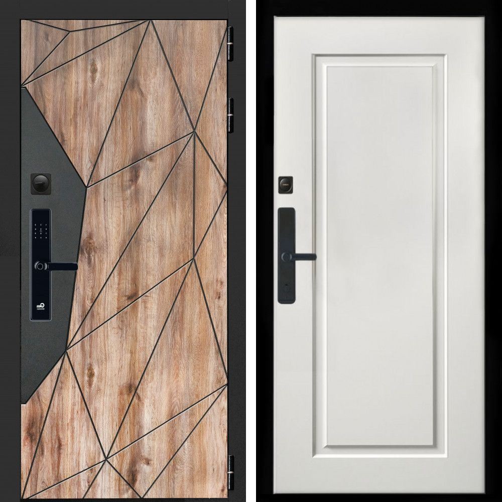 Входная дверь • Габаритные размеры: 2050x860 мм, 2050x960 мм • Металл 1.8мм. Черная шагрень • Внешнее покрытие: МДФ 12 мм. • Толщина полотна: 115 мм. • Толщина коробки: 120 мм. • Короб закрытого типа, утепленный • Уплотнитель: 3 контура • Два вертикальных ребра жесткости • ЭЛЕКТРОННЫЙ ЗАМОК НА ВЫБОР • Замок дополнительный: Гардиан 6001 • Врезная броненакладка • Пазы на коробке под доборы • Независимая задвижка есть • Фурнитура ЧЕРНАЯ ..