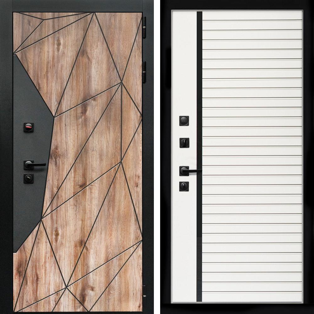 Входная дверь • Габаритные размеры: 2050x860 мм, 2050x960 мм • Металл 1.5мм. • Внешнее покрытие: МДФ 12 мм. • Цвет покрытия: Орех коньяк кантри/Черный кварц. • Толщина полотна: 100 мм. • Толщина коробки: 105 мм. • Окрас короба:Черная шагрень. • Короб закрытого типа, утепленный. • Уплотнитель: 3 контура. • Два вертикальных ребра жесткости. • Замок основной: Guardian 3211 (цилиндровый). • Замок дополнительный: Guardian 300 • Врезная броненакладка. • Независимая задвижка есть. • Фурнитура Черная. ..