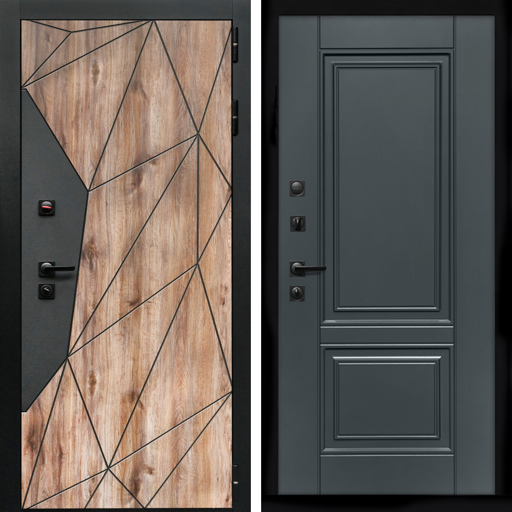 Входная дверь • Габаритные размеры: 2050x860 мм, 2050x960 мм • Металл 1.5мм. • Внешнее покрытие: МДФ 12 мм. • Цвет покрытия: Графит. • Толщина полотна: 100 мм. • Толщина коробки: 105 мм. • Окрас короба:Черная шагрень. • Короб закрытого типа, утепленный. • Уплотнитель: 3 контура. • Два вертикальных ребра жесткости. • Замок основной: Guardian 3211 (цилиндровый). • Замок дополнительный: Guardian 300 • Врезная броненакладка. • Независимая задвижка есть. • Фурнитура Черная. ..