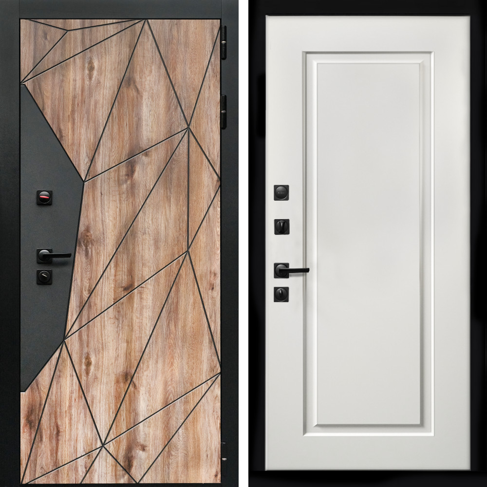 Входная дверь • Габаритные размеры: 2050x860 мм, 2050x960 мм • Металл 1.8мм • Внешнее покрытие: МДФ 16 мм. • Толщина полотна: 115 мм. • Толщина коробки: 120 мм. • Короб закрытого типа, утепленный • Уплотнитель: 3 контура • Два вертикальных ребра жесткости • Замок основной: Гардиан 6211 с блокировкой язычка • Замок дополнительный: Гардиан 6001 • Врезная броненакладка • Пазы на коробке под доборы • Независимая задвижка есть • Фурнитура Черная ..