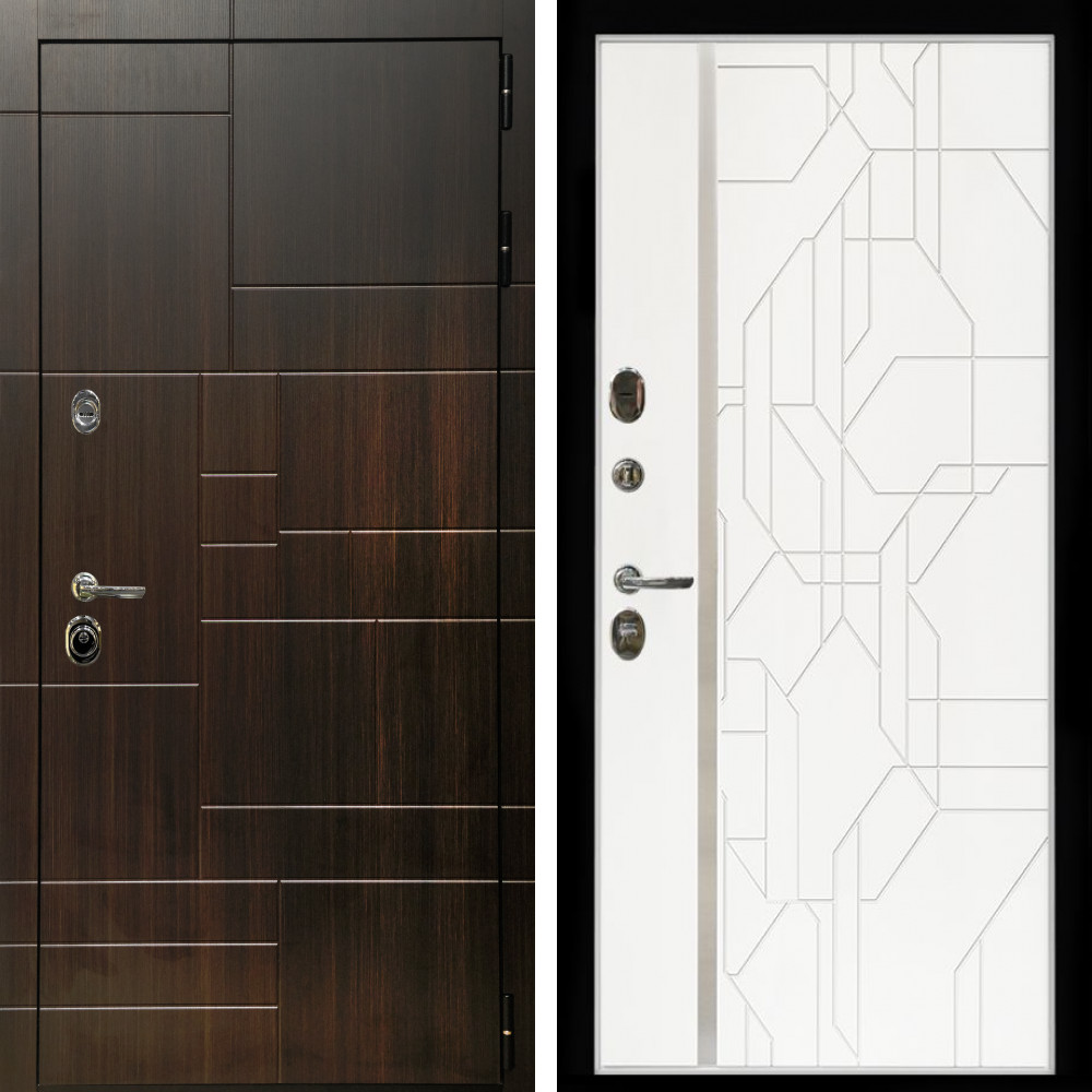 Входная дверь • Габаритные размеры: 2050x860 мм, 2050x960 мм • Металл 1.8мм • Внешнее покрытие: МДФ 16 мм. • Толщина полотна: 115 мм. • Толщина коробки: 120 мм. • Короб закрытого типа, утепленный • Уплотнитель: 3 контура • Два вертикальных ребра жесткости • Замок основной: Гардиан 6211 с блокировкой язычка • Замок дополнительный: Гардиан 6001 • Врезная броненакладка • Пазы на коробке под доборы • Независимая задвижка есть • Фурнитура ХРОМ ..