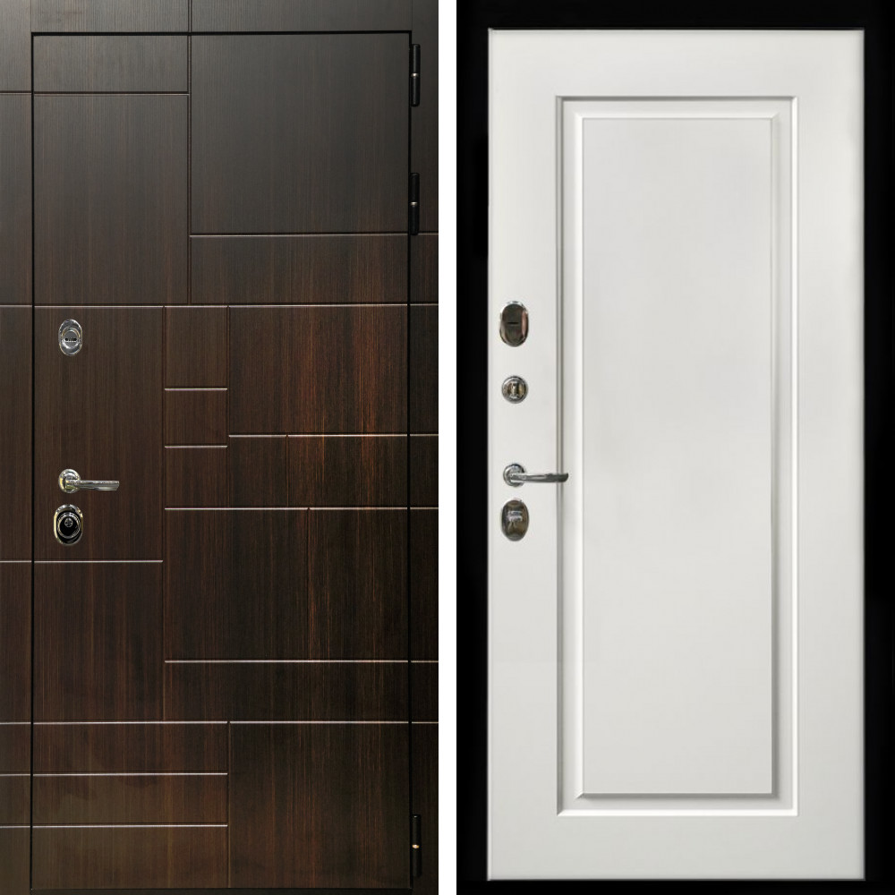 Входная дверь • Габаритные размеры: 2050x860 мм, 2050x960 мм • Металл 1.8мм • Внешнее покрытие: МДФ 16 мм. • Толщина полотна: 115 мм. • Толщина коробки: 120 мм. • Короб закрытого типа, утепленный • Уплотнитель: 3 контура • Два вертикальных ребра жесткости • Замок основной: Гардиан 6211 с блокировкой язычка • Замок дополнительный: Гардиан 6001 • Врезная броненакладка • Пазы на коробке под доборы • Независимая задвижка есть • Фурнитура Хром ..