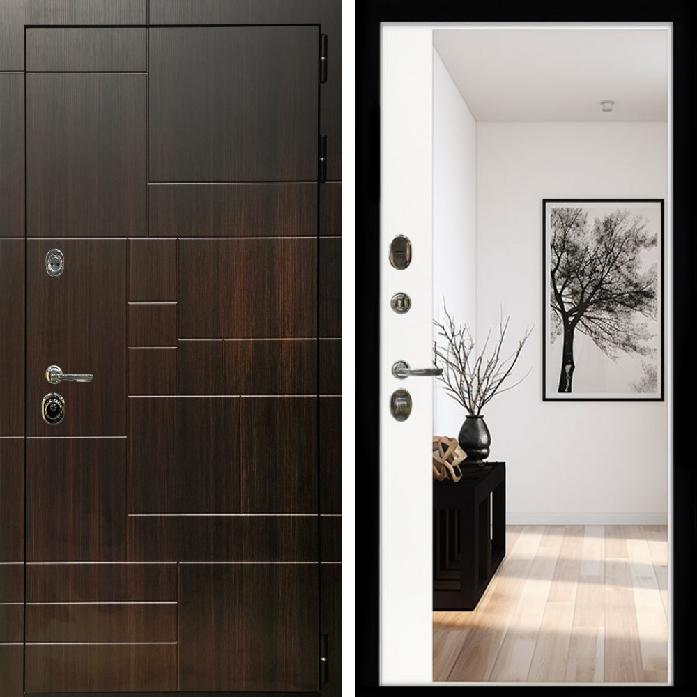 Входная дверь Inteko Домино + Зеркало панорама Белый софт