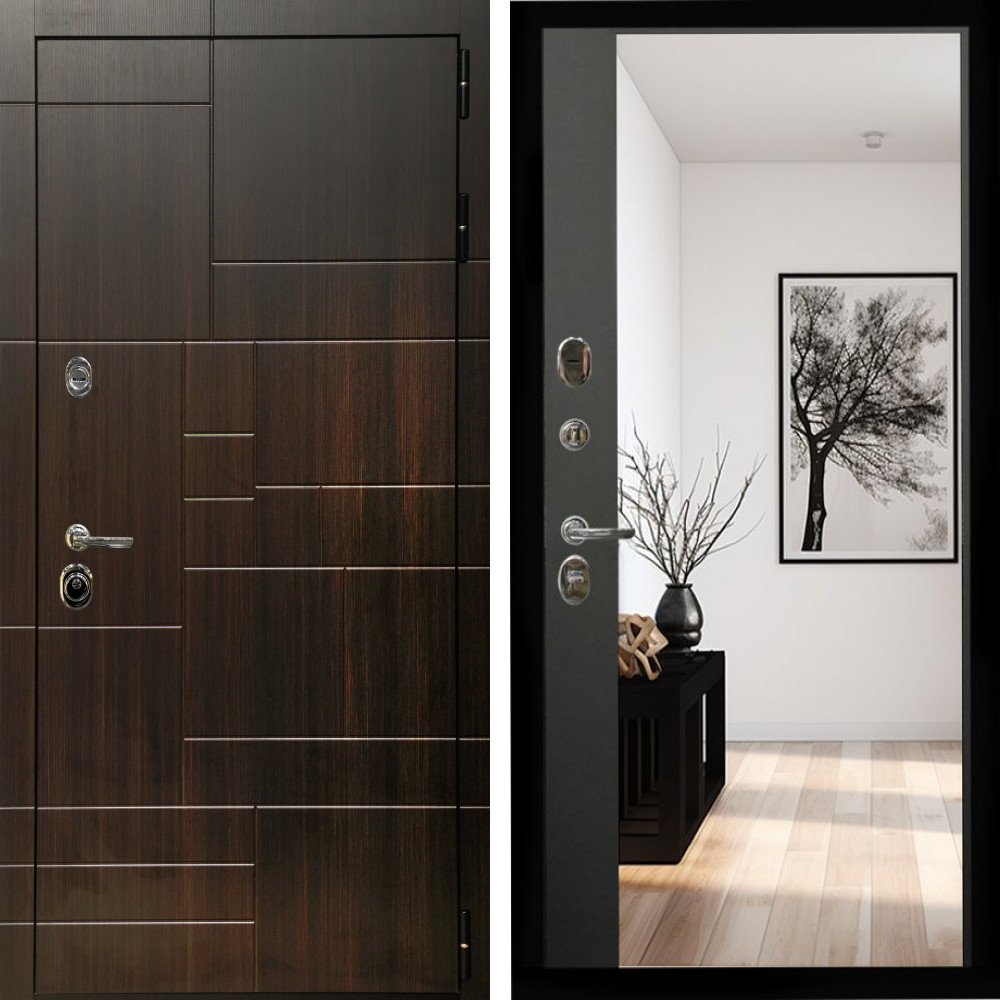 Входная дверь Inteko Домино + Зеркало панорама Черный кварц