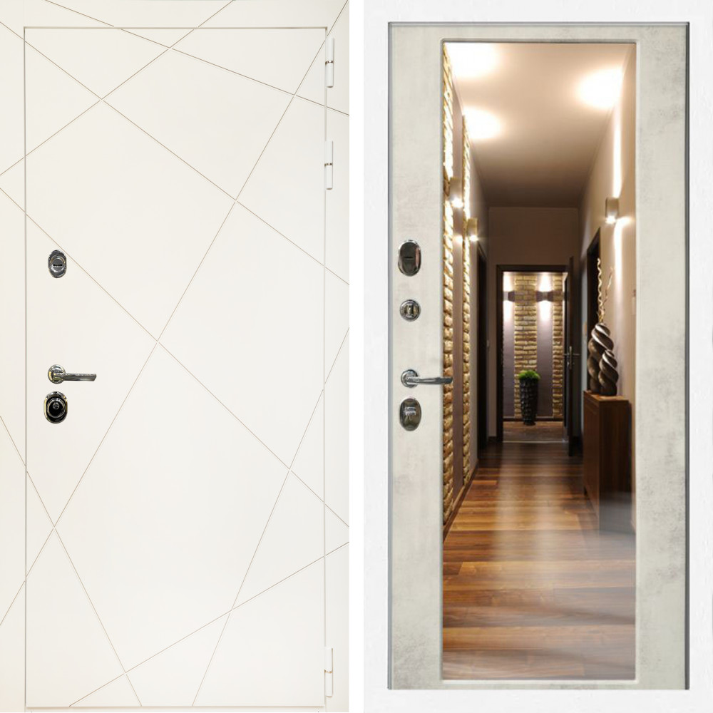 Входная дверь Inteko Эстет Белый Мат + Зеркало бетон светлый