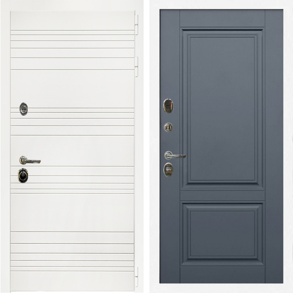 Входная дверь Inteko Гранд Белый Мат + ФЛ-117 с полосками графит
