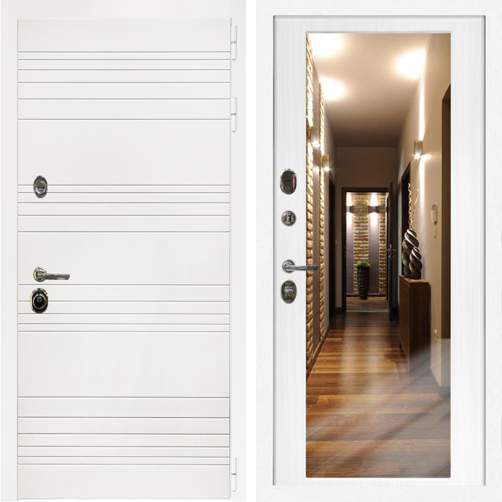 Входная дверь Inteko Гранд Белый Мат + Зеркало беленый дуб