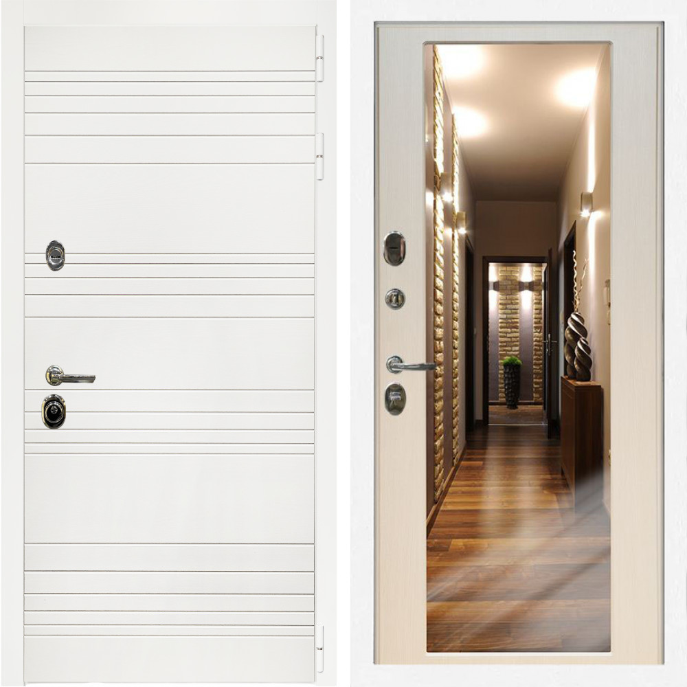 Входная дверь Inteko Гранд Белый Мат + Зеркало эко дуб