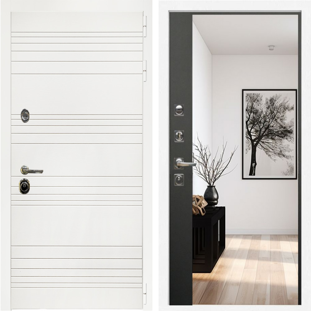 Входная дверь Inteko Гранд Белый Мат + Зеркало панорама Черный кварц