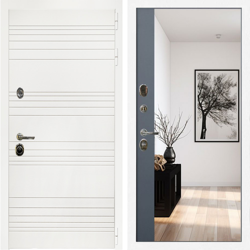 Входная дверь Inteko Гранд Белый Мат + Зеркало панорама Графит