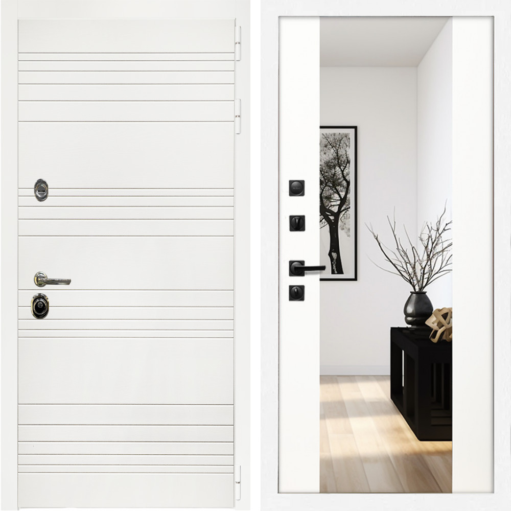 Входная дверь Inteko Гранд Белый Мат + Зеркало сб-16 белый матовый