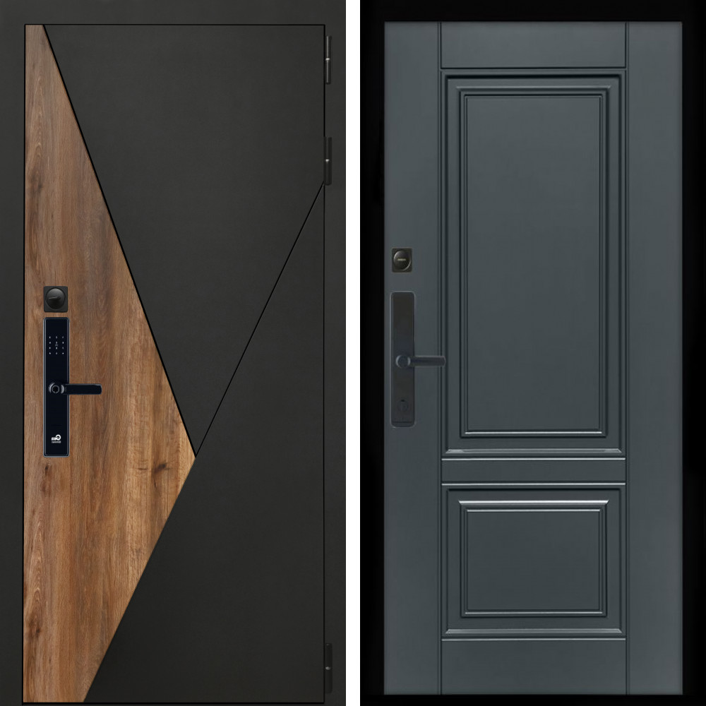 Входная дверь • Габаритные размеры: 2050x860 мм, 2050x960 мм • Металл 1.8мм. Черная шагрень • Внешнее покрытие: МДФ 12 мм. • Толщина полотна: 115 мм. • Толщина коробки: 120 мм. • Короб закрытого типа, утепленный • Уплотнитель: 3 контура • Два вертикальных ребра жесткости • ЭЛЕКТРОННЫЙ ЗАМОК НА ВЫБОР • Замок дополнительный: Гардиан 6001 • Врезная броненакладка • Пазы на коробке под доборы • Независимая задвижка есть • Фурнитура ЧЕРНАЯ ..