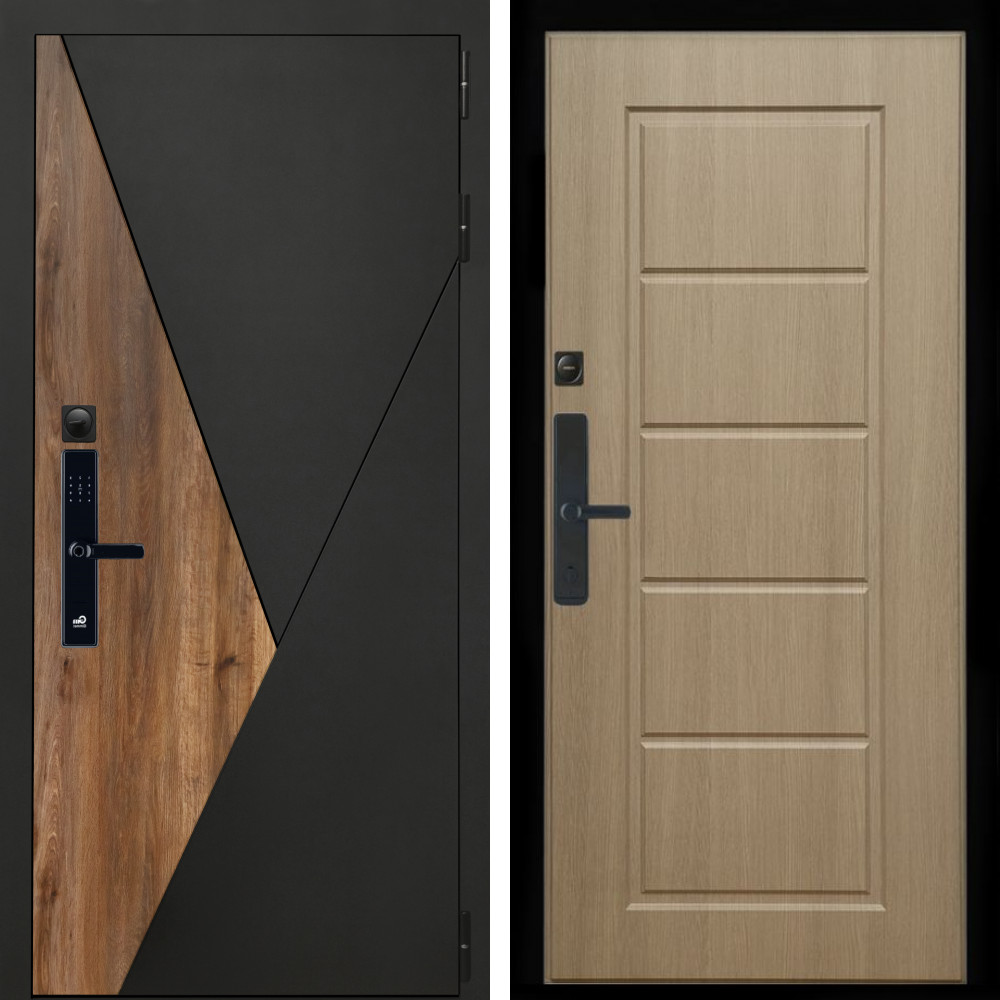 Входная дверь • Габаритные размеры: 2050x860 мм, 2050x960 мм • Металл 1.8мм. Черная шагрень • Внешнее покрытие: МДФ 12 мм. • Толщина полотна: 115 мм. • Толщина коробки: 120 мм. • Короб закрытого типа, утепленный • Уплотнитель: 3 контура • Два вертикальных ребра жесткости • ЭЛЕКТРОННЫЙ ЗАМОК НА ВЫБОР • Замок дополнительный: Гардиан 6001 • Врезная броненакладка • Пазы на коробке под доборы • Независимая задвижка есть • Фурнитура ЧЕРНАЯ ..