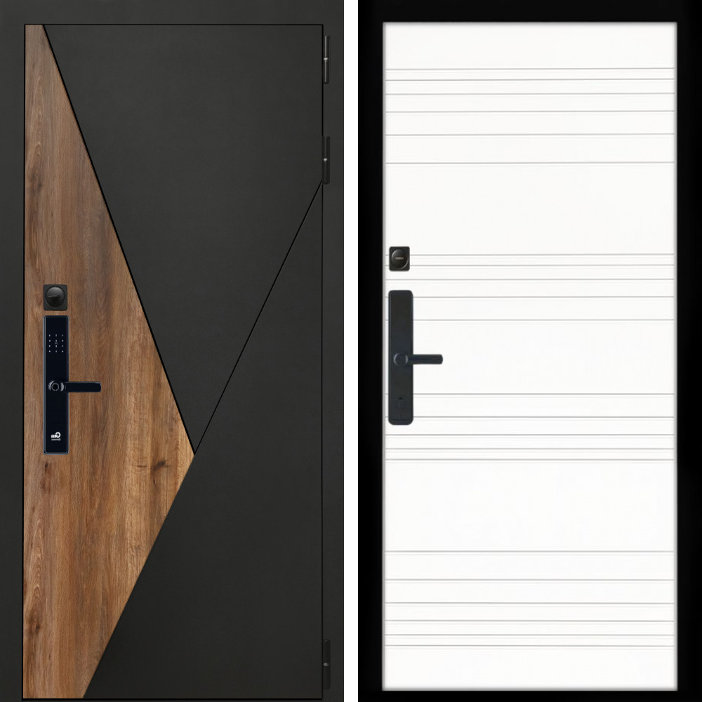 Входная дверь • Габаритные размеры: 2050x860 мм, 2050x960 мм • Металл 1.8мм • Внешнее покрытие: МДФ 16 мм белый мат с молдингом черная лакобель • Толщина полотна: 115 мм. • Толщина коробки: 120 мм. • Короб закрытого типа, утепленный • Уплотнитель: 3 контура • Два вертикальных ребра жесткости • Замок основной: Гардиан 6211 с блокировкой язычка • Замок дополнительный: Гардиан 6001 • Врезная броненакладка • Пазы на коробке под доборы • Независимая задвижка есть • Фурнитура Черная ..